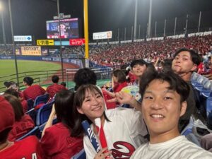 (写真左が私です。休日に同期と野球観戦に行きました。)