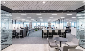 次に、執務フロアの紹介をしたいと思います。執務フロアはフリーアドレスのため、基本的にはどの場所に座っても大丈夫です!ただし、部署ごとに優先スペースは定められていますので、先輩に聞きたいことが多い場合やチームとの連携が必要な時は部署ごとに割り当てられた優先スペースを使用し、1人で集中したいときは集中できる個別ブースで、と用途に応じて選んで執務されている方が多いです。