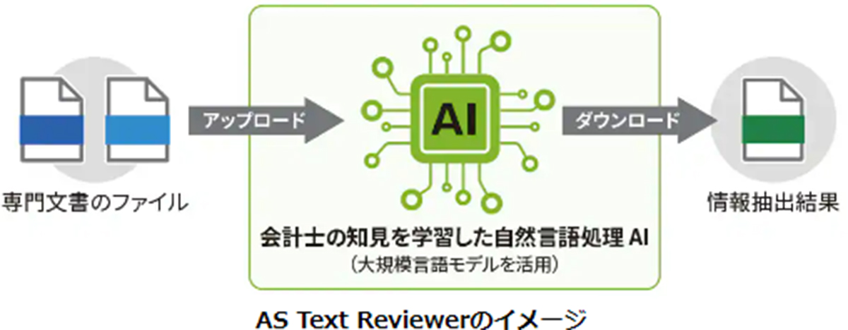 「AS Text Reviewer」は、熟練会計士の知見・ノウハウを学習し、新リース会計基準にも対応したAIが大量の専門文書から監査に必要な情報を抽出・比較できる最先端の監査ツールです。目を皿にする作業から監査チームを解放し、早期のリスク検知や洞察の提供を通じてサプライズのない高品質な監査を推進します。