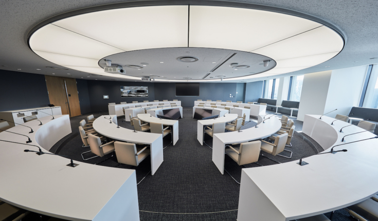 外部講師を招いたセミナーやマネジメントの重要会議が行われるBoard Room